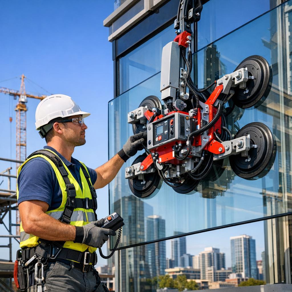 Die Integration von Vakuum-Hebetechnik in Glasliftern sorgt für besonders sicheren Halt und einfache Handhabung. Dadurch steigt die Produktivität auf der Baustelle deutlich.